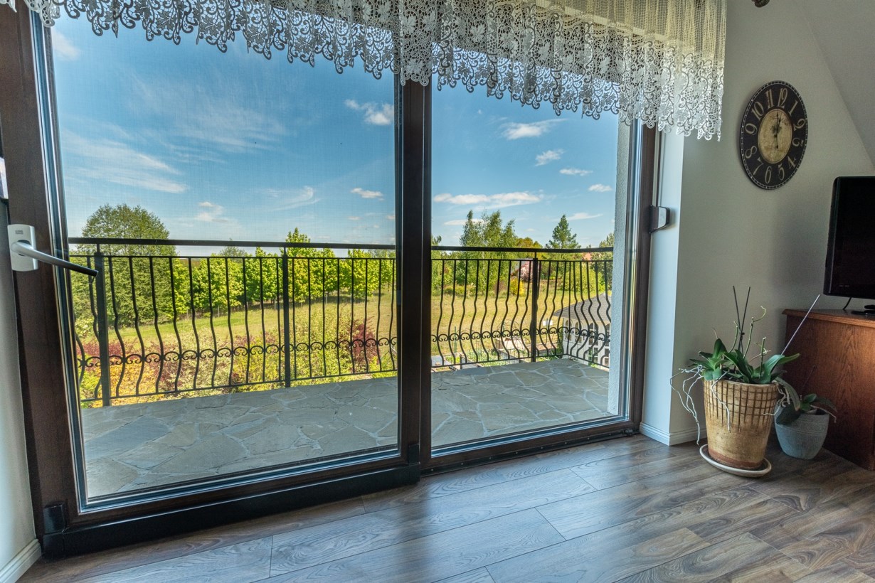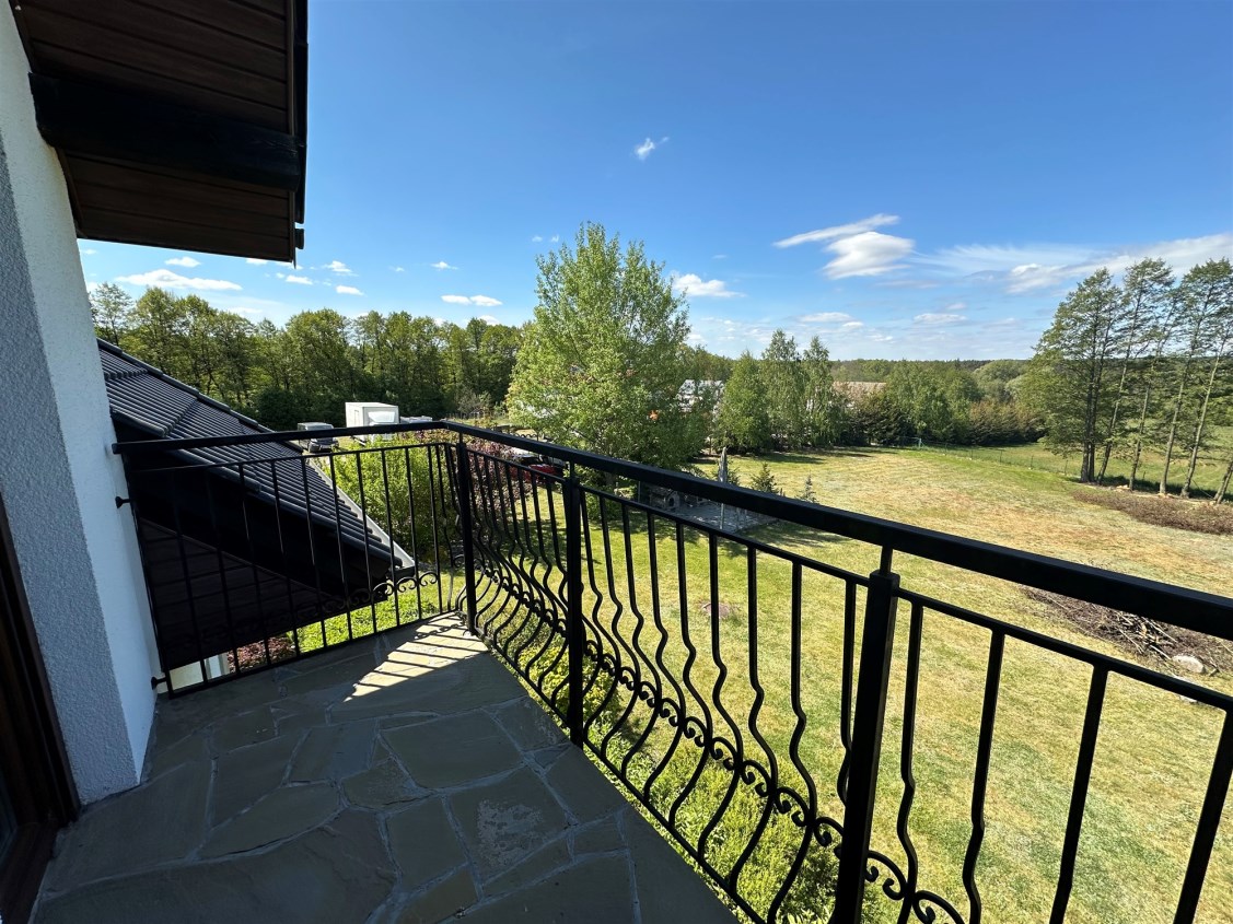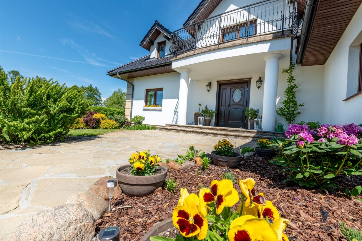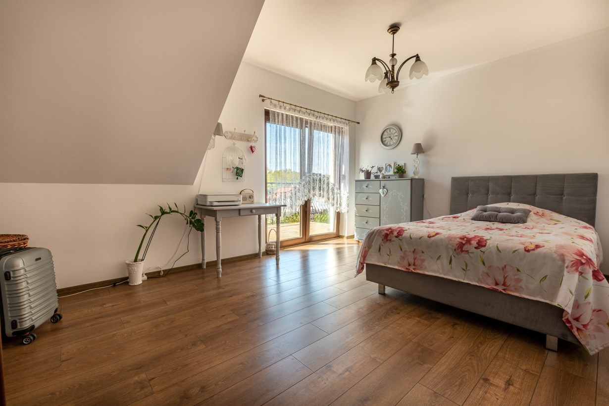 Dom wolnostojący, z dwoma kondygnacjami nadziemnymi, wybudowany w 2014 roku w cichym i spokojnym miejscu. Działka o łącznej powierzchni 3711 m2 uzbrojona jest w sieć elektroenergetyczną, wodociągową (oprócz wodociągu gminnego dodatkowo własne ujęcie wody) oraz kanalizacyjną. Na działce fotowoltaika. Dom ogrzewany pompą ciepła. Rekuperacja. Ogród zagospodarowany z rozprowadzonym nawodnieniem - m.in. wydzielone miejsce zadzaszone pod grilla, warzywniak, wiata na garażowanie dodatkowych aut.