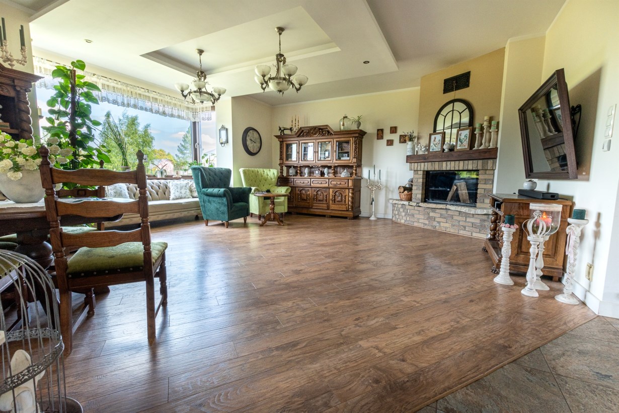 - salon o pow. 39 m2 - w nim usytuowano kominek z rozprowadzeniem ciepła, super widok na tereny zielone,