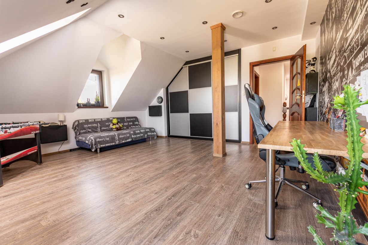 - dodatkowy jeden przestronny pokój obecnie zagospodarowany na pomieszczenie rekreacyjne czyli taką mini siłownię - pow. 21 m2,