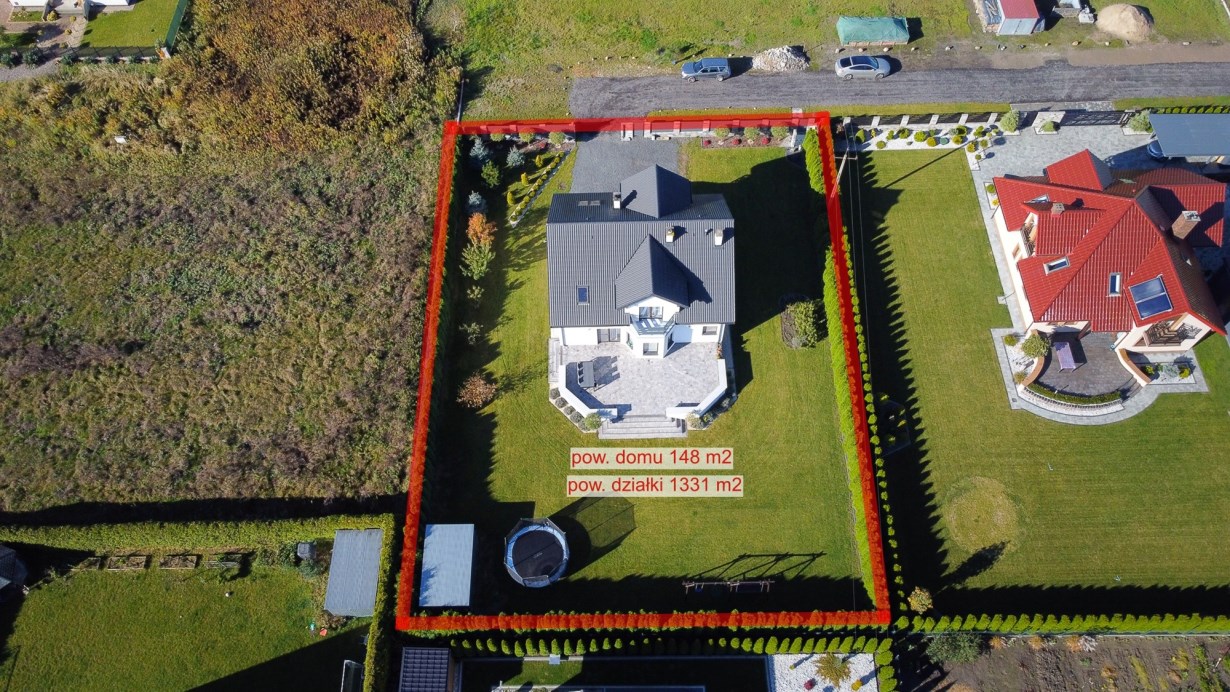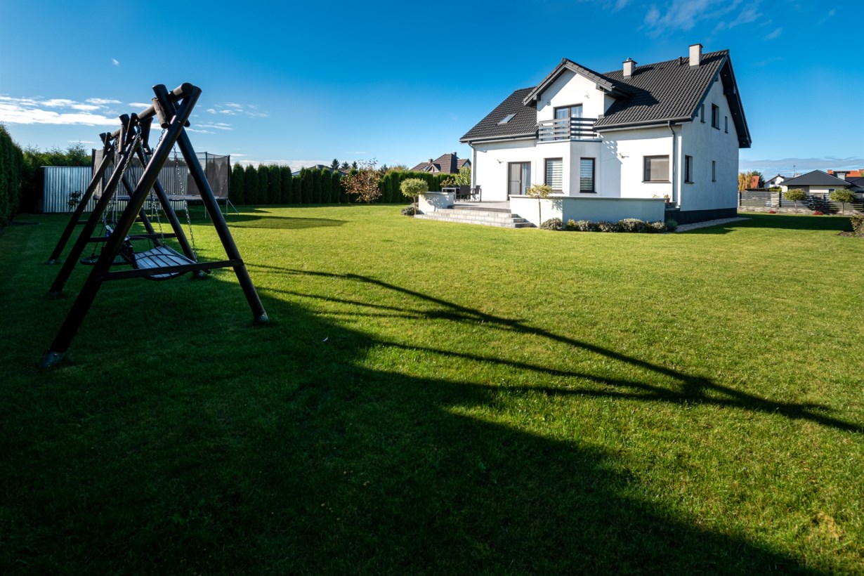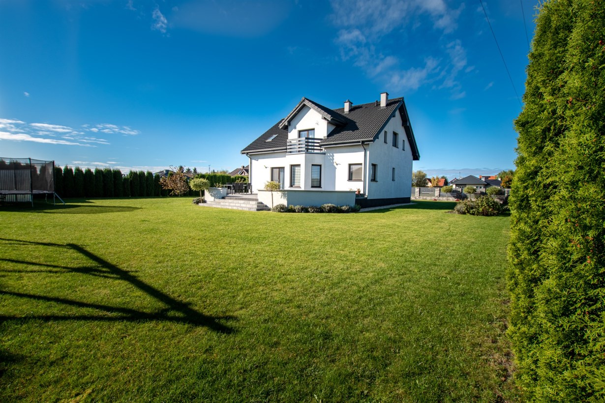 Nieruchomość znajduje się na dużej, foremnej działce o powierzchni 1331 m², w pełni ogrodzonej i zadbanej, z wypielęgnowanym trawnikiem oraz licznymi nasadzeniami z krzewów ozdobnych.