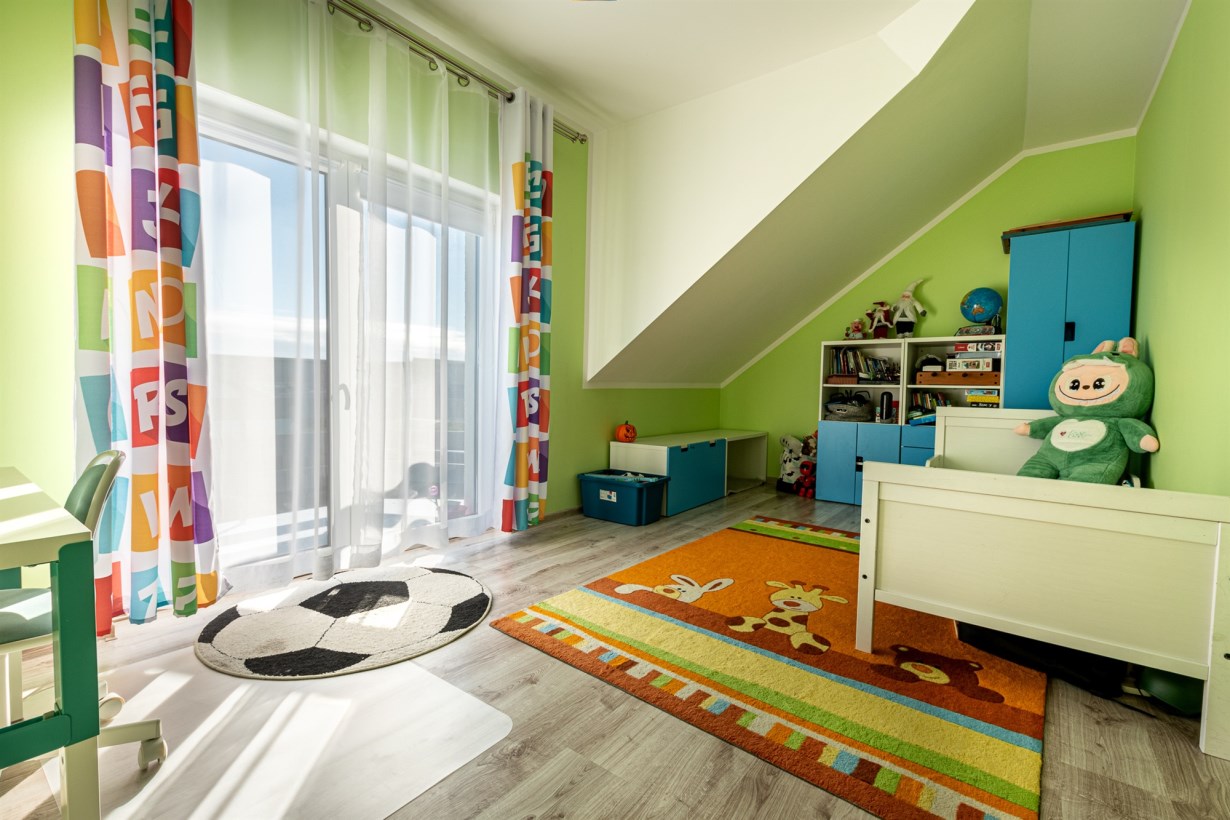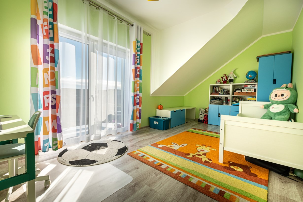 Kolorystyka zachowała spójność wraz z kolorystyką parteru, czyli jasne kolory, które wraz z wpadającym do pomieszczeń słońcem tworzą atmosferę ciepła i przytulności. Czyli tak, jak w domu być powinno :-)