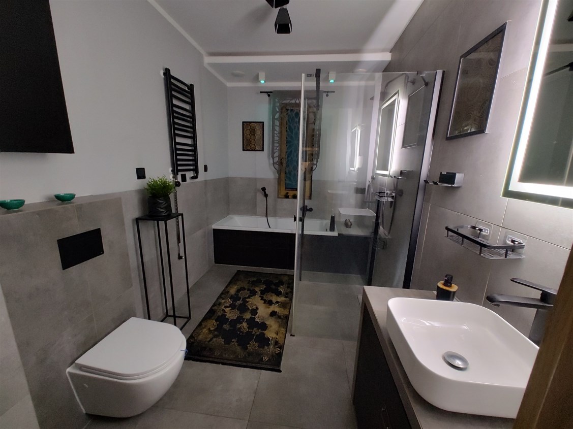 - łazienka z wanna i prysznicem (7m2) + system nagłośnienia,