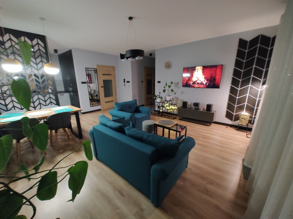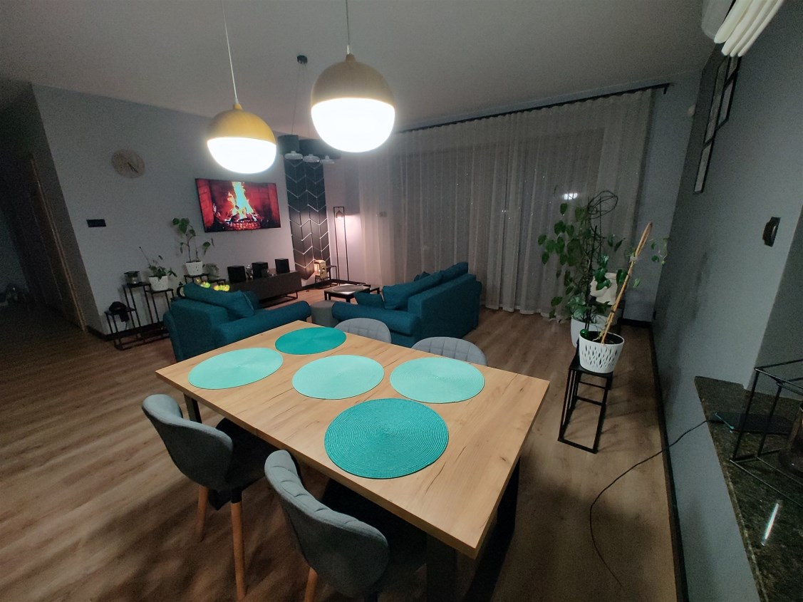 - przestronny salon z nowoczesnym aneksem kuchennym (42m2), - otwarty plan z wyjściem na...