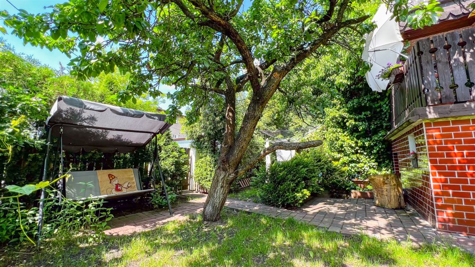Działka o powierzchni 360 m2 nie wymaga żadnych nakładów finansowych, całkowicie zagospodarowana w tereny zielone i liczne krzewy, pnącza itp. Uroku dodaje oczko wodne nieopodal, którego jest idealne miejsce do wypoczynku.