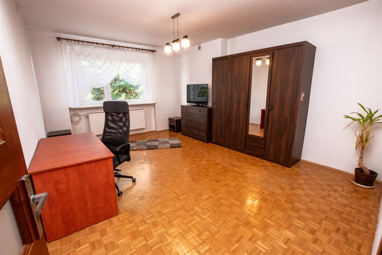 - trzy w pełni niezależne pokoje, jeden z nich około 15,5 m2 z wyjściem na balkon, drugi mniejszy o pow. około 7,65 m2, trzeci największy o pow. około 21,40 m2. W pokojach na podłodze mozaika parkietowa, na ścianach gładzie i tapety,