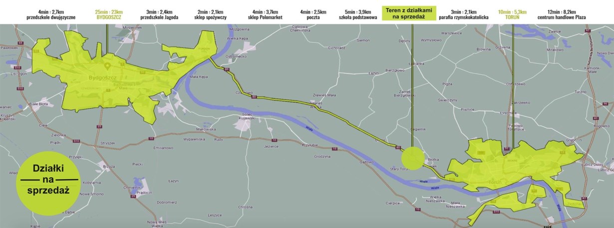 - bezproblemowy dojazd do Torunia (około 15 minut jazdy autem) jak i do Bydgoszczy - co daje idealne możliwości dojazdu do pracy, restauracji czy do sklepu,