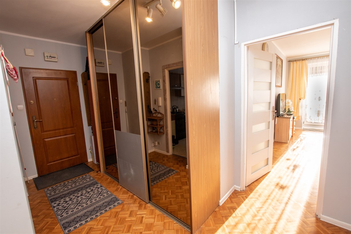 - trzech niezależnych pokoi - do każdego z nich wejście bezpośrednio z przedpokoju, dodatkowo w największym z pokoi wyjście na duży balkon, z którego rozpościera się widok na pustą przestrzeń - nikt nie zagląda w okna,