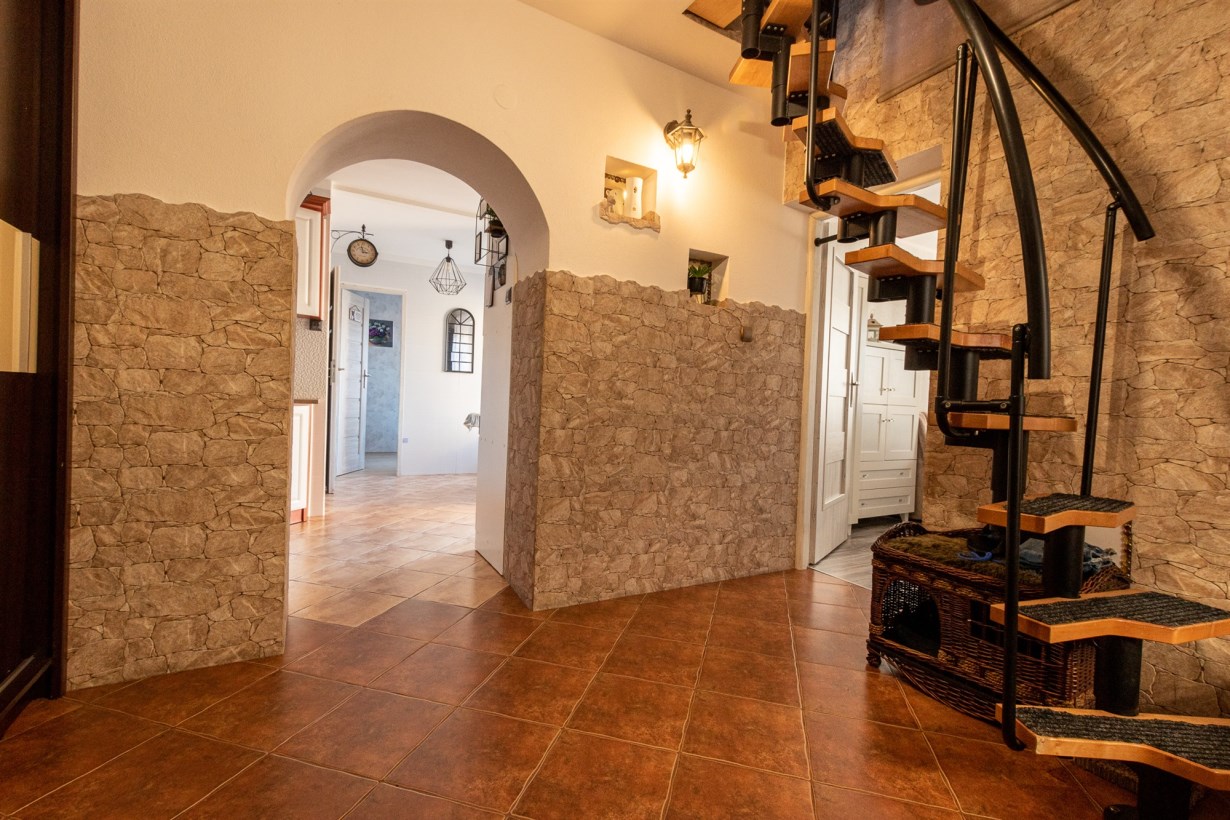 Pomieszczenia pomocnicze to kotłownia 4m2 (osobne wejście), mieści się tam np. piec gazowy i taki dodatkowy "stryszek" ponad 17m2 o obniżonej wysokości, idąc schodami po prawej stronie.