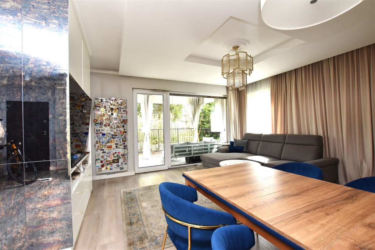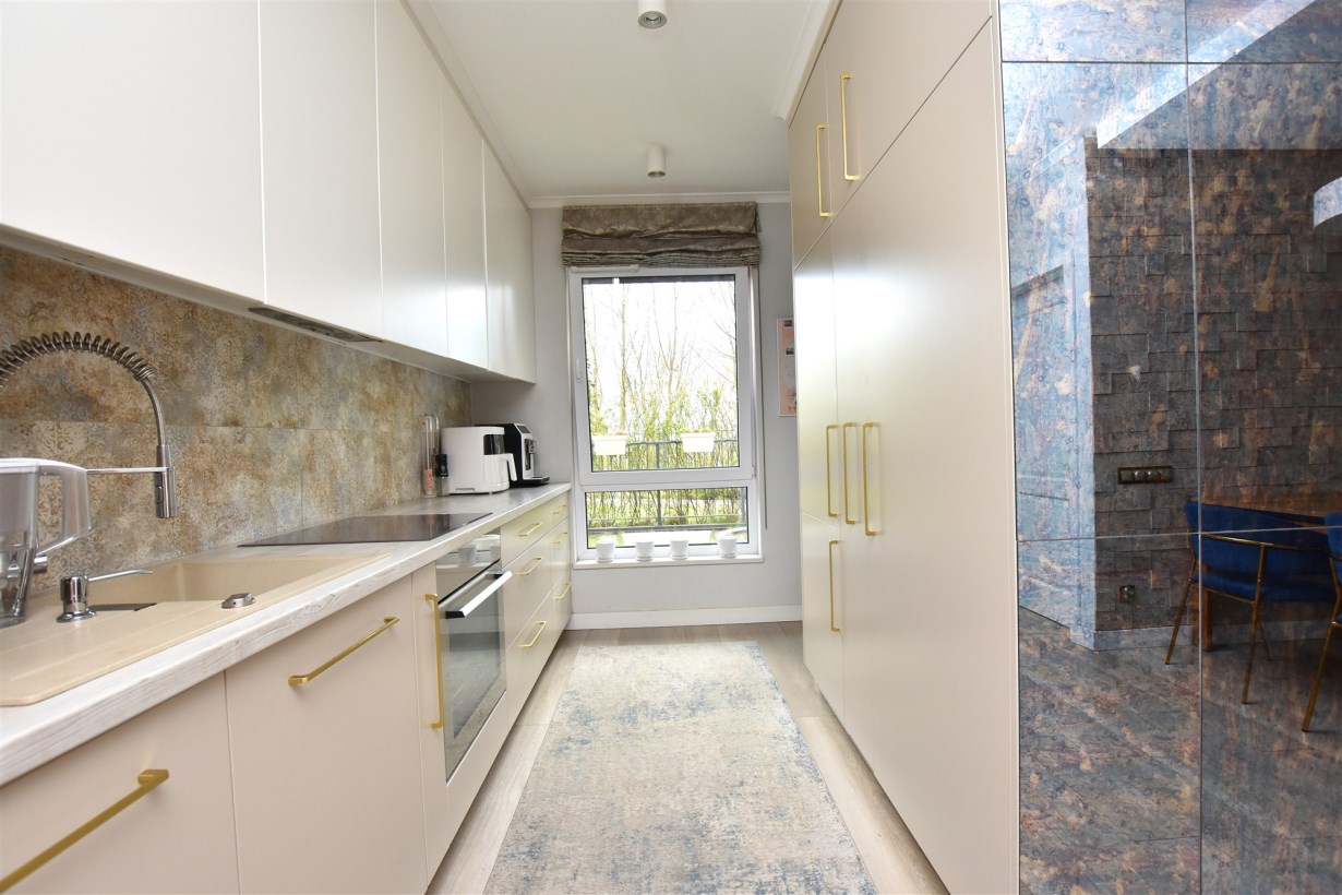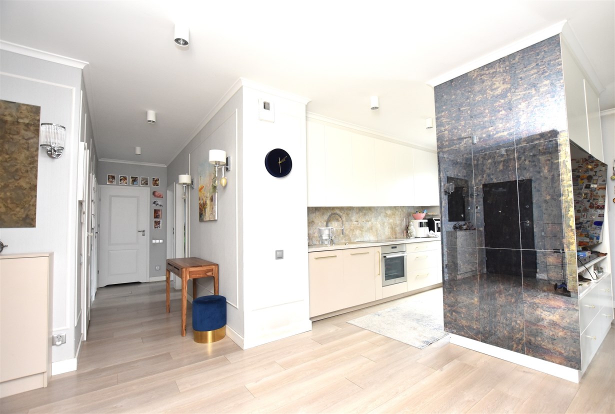 Apartament został wykończony z wysokiej jakości materiałów, zaprojektowany w stylu łączącym klasyczną elegancję z nowoczesnymi rozwiązaniami.