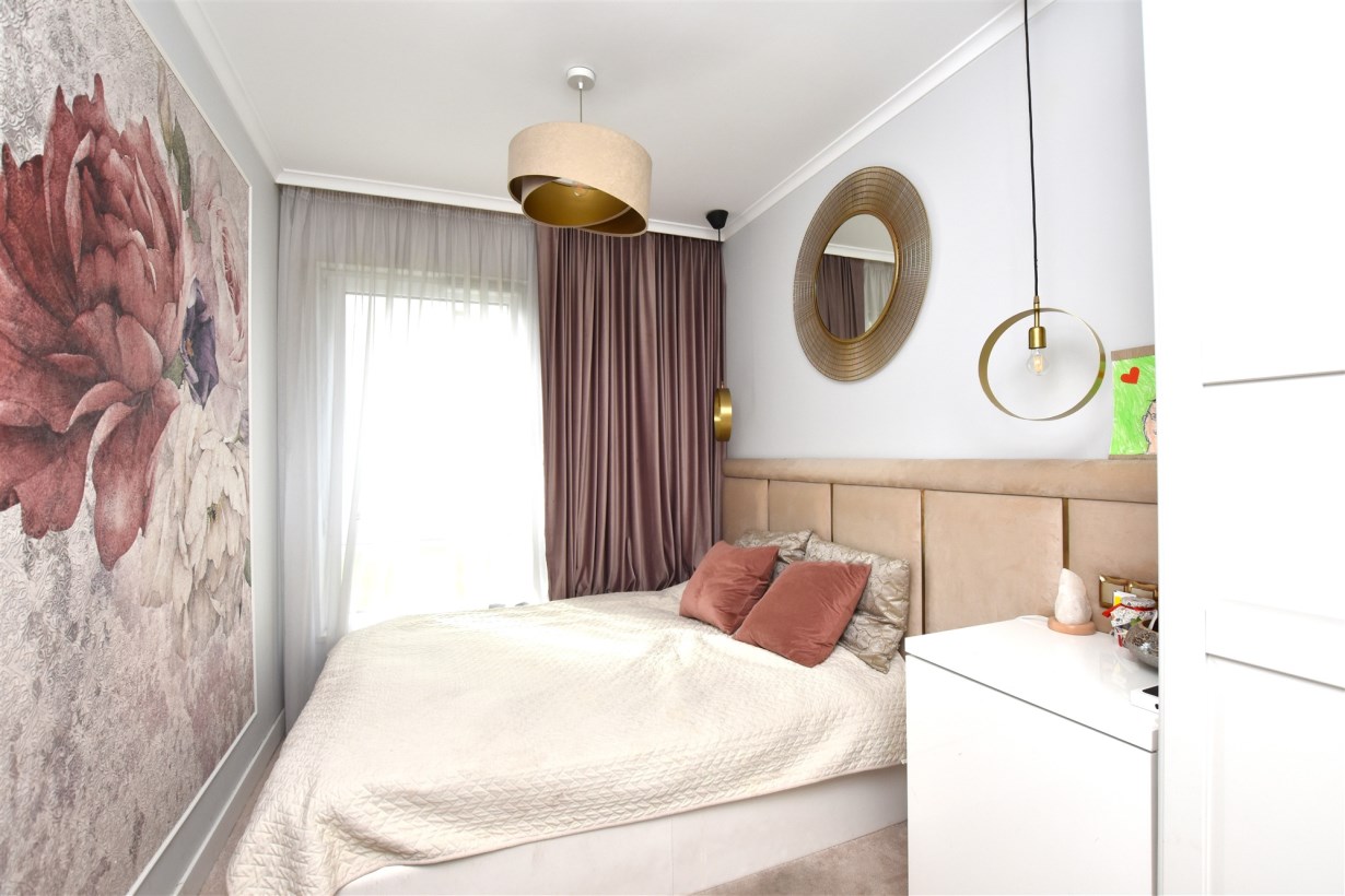 Lokal jest umeblowany.Kuchnia wyposażona została w estetyczną zabudowę oraz sprzęt AGD. W przedpokoju znajduje się zabudowa typu Komandor, natomiast w pokojach dostępne są pojemne szafy. Całość utrzymana jest w jasnej, przytulnej kolorystyce.