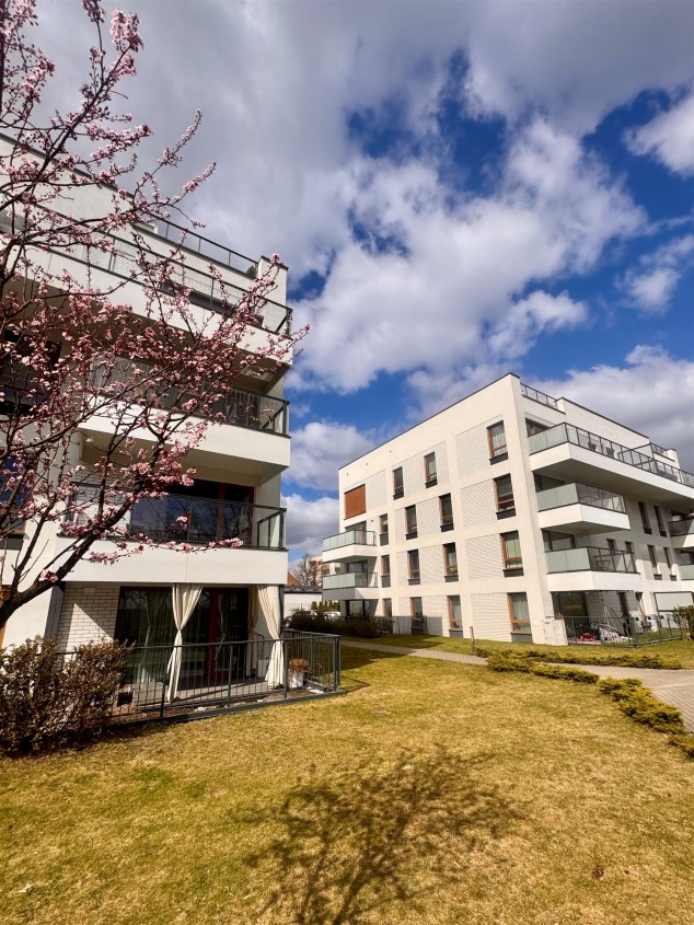 Dodatkowym atutem nieruchomości jest przestronny taras z ogródkiem, oferujący widok na tereny zielone- idealne miejsce do relaksu.