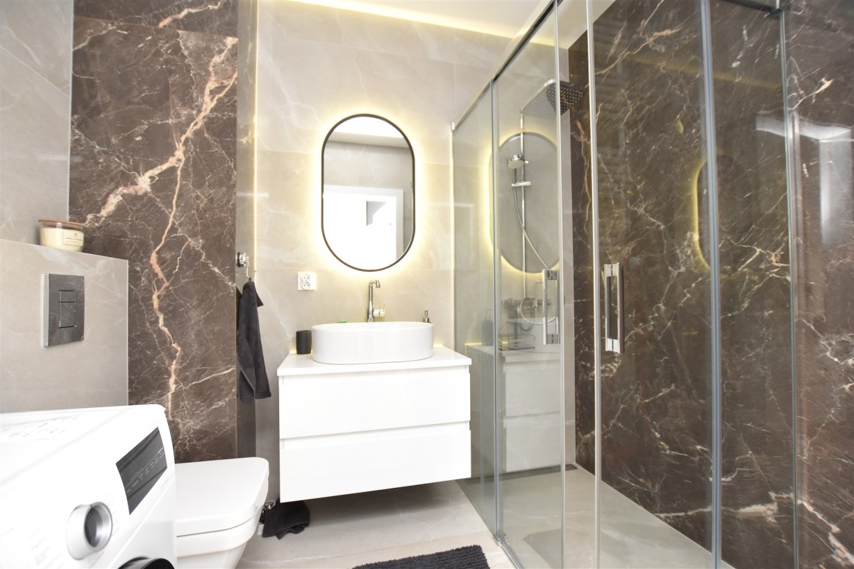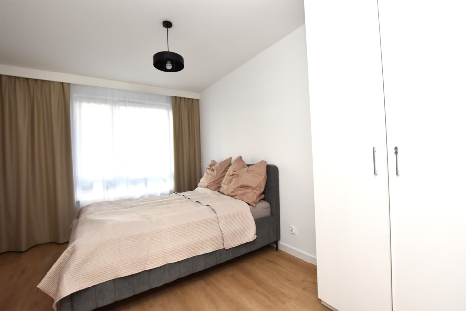 Mieszkanie jest nowe, świeżo wykończone materiałami wysokiej jakości.