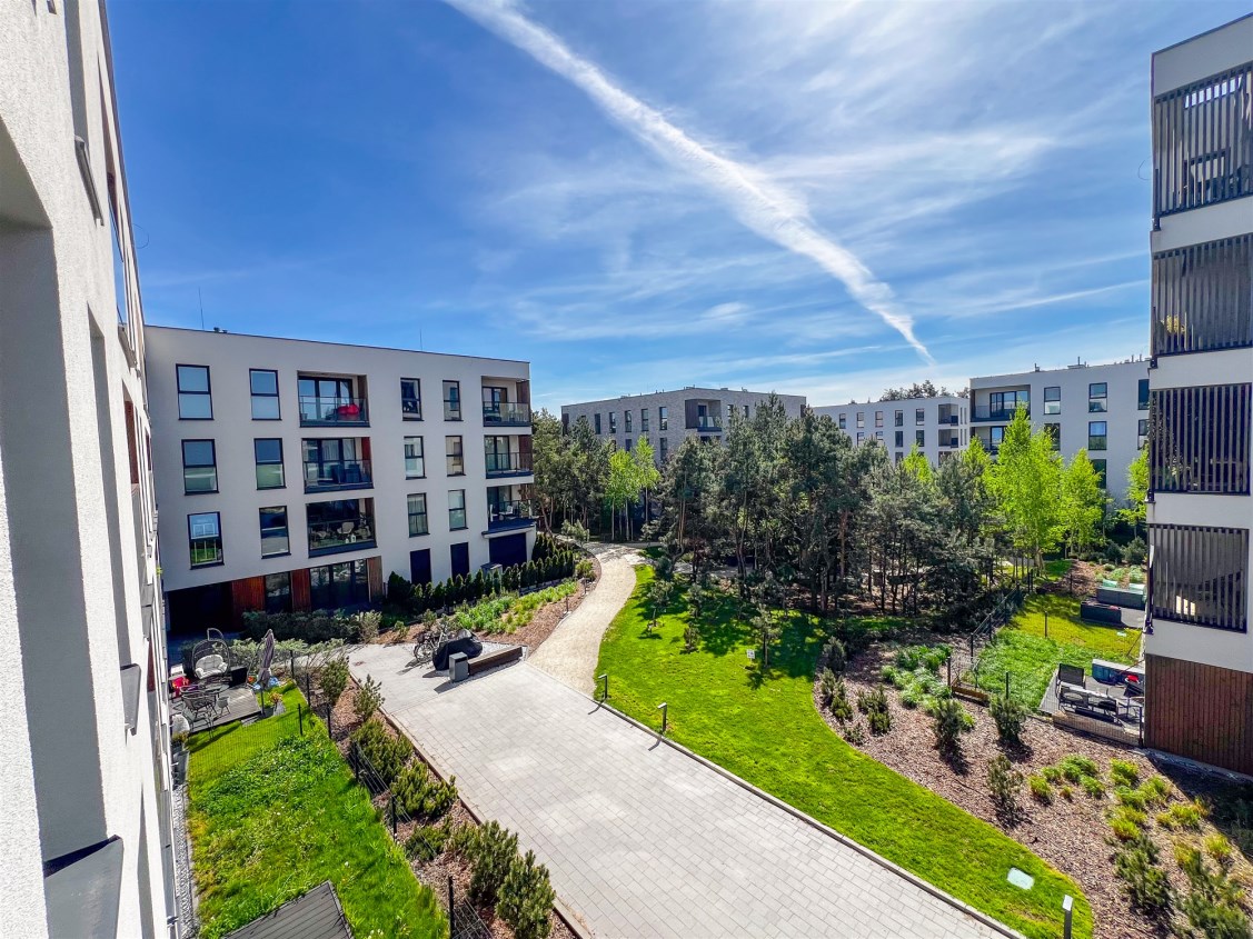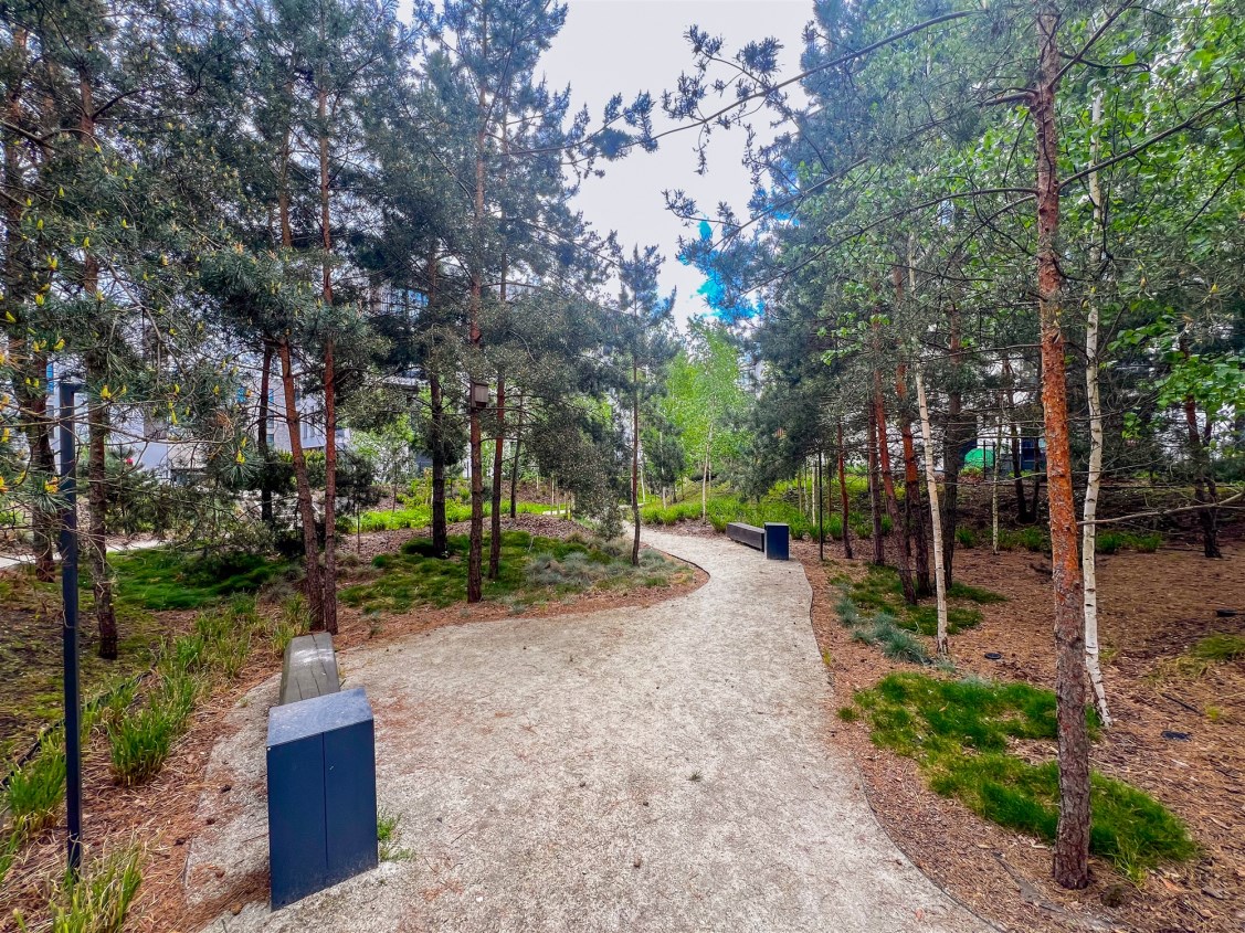 Klatki schodowe wykończone z wysokiej klasy materiałów, przy wejściu do bloków, na holach i przy balkonach zamontowano elementy wykończeniowe z naturalnego drewna. Osiedle bardzo zielone - posadzono wiele krzewów i nasadzeń. Przed blokiem miejsca parkingowe.
