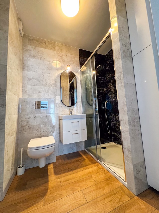 - łazienki połączonej z wc - do dyspozycji prysznic z deszczownicą, umywalka z szafką, wc, armatura Grohe,