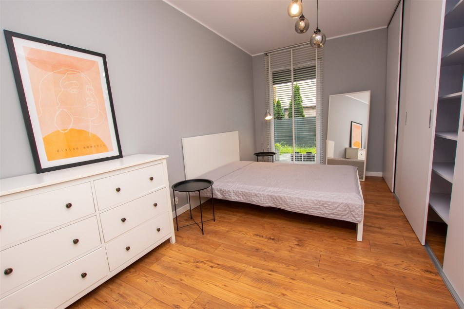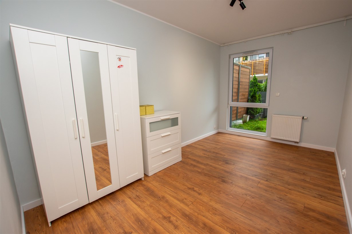- dwa pokoje - jeden z nich zaaranżowany jako sypialnia - do dyspozycji łóżko z materacem oraz pojemna zabudowana szafa, drugi z nich do aranżacji (na tą chwilę znajduje się szafa oraz komoda),