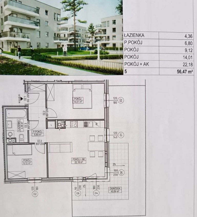 Mieszkanie ma powierzchnię 56,63m2. Jest w pełni urządzone, gotowe do zamieszkania co pozwala na szybkie wprowadzenie się.