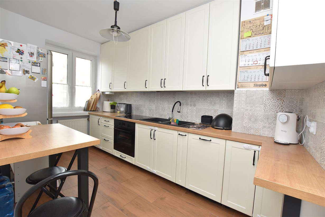 Mieszkanie jest praktycznie gotowe do wprowadzenia. Jest bardzo przytulne, słoneczne i zabrane. Było przez właścicieli sukcesywnie remontowane. Odnowienia wymaga jedynie łazienka, ale jest funkcjonalna i ma duży potencjał. W zeszłym roku wyremontowano kuchnię i mniejszy pokój. Kuchnia przeszła generalny remont: wymieniono całą zabudowę, wszystkie sprzęty oraz kafle. Wszystko jest nowe.