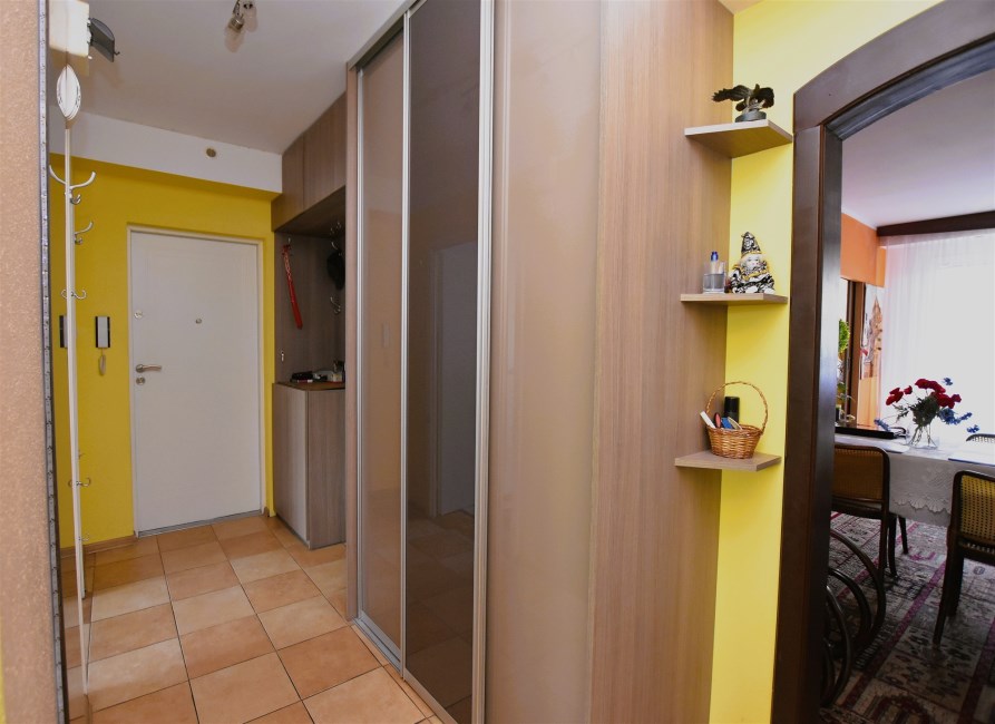 Należy zacząć od tego, że wszystkie pomieszczenia są nieco wyższe niż tradycyjnie. Ale najbardziej imponującą rzeczą jest fenomenalna kuchnia. Duża przestronna, prawie w kwadracie i bardzo ustawna. Poza tym do naszej dyspozycji pozostaje także przepiękna sypialnia gdzie mieści się duże łóżko, szafa i jeszcze pozostaje dużo przestrzeni. W mieszkaniu jest też miejsce na trzy zabudowane szafy typu Komandor. Świetną sprawą jest także ogromna loggia z widokiem na zieleń.