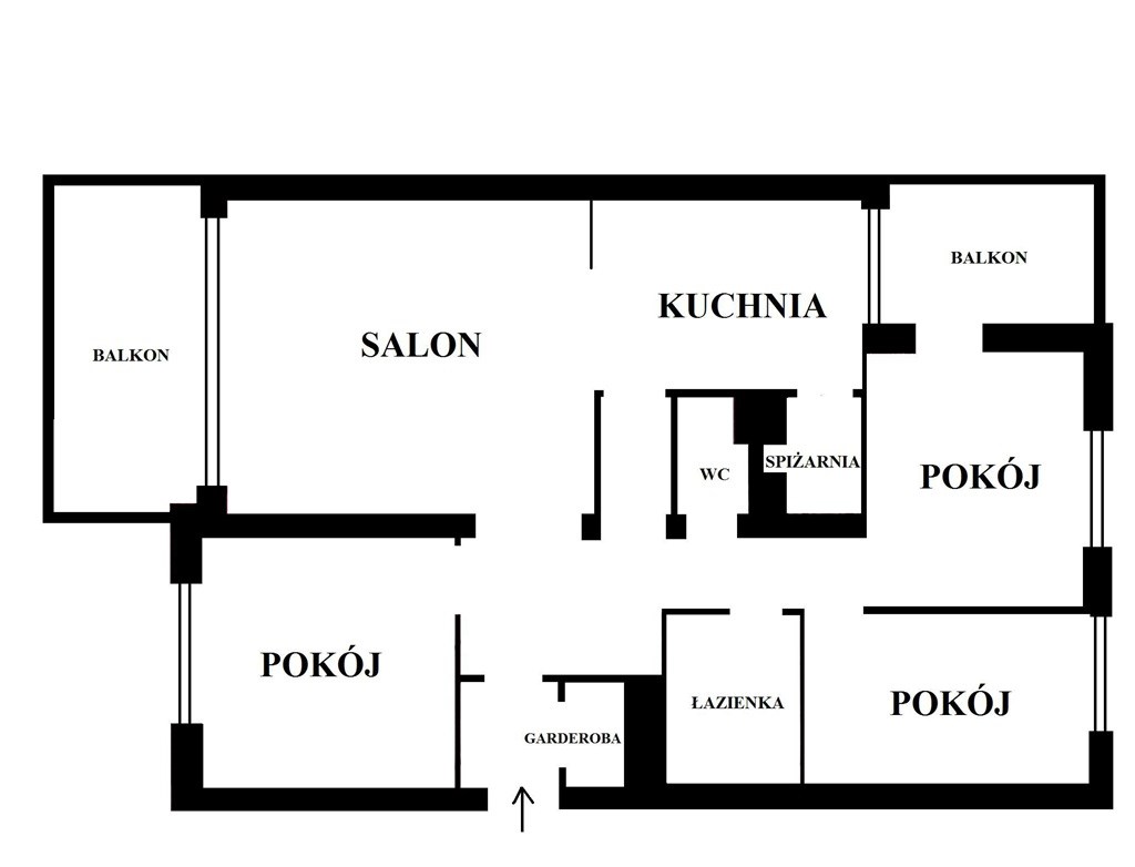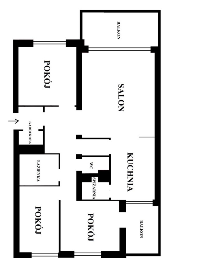 - trzech bardzo ustawnych sypialni (10,9m2, 9,9m2, 8,9m2) z czego jedna z nich ma wyjście na drugi balkon;