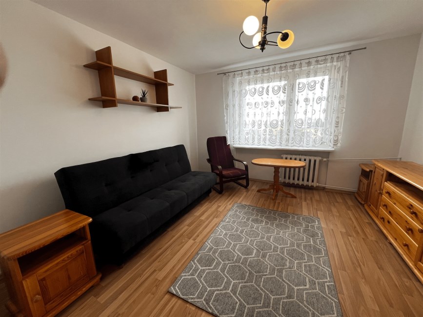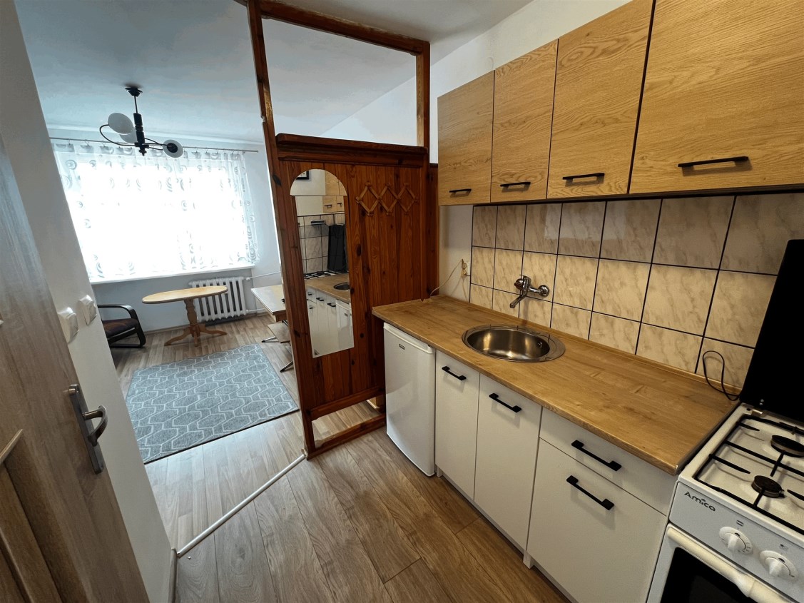 Mieszkanie kompletnie wyposażone oraz umeblowane - do dyspozycji m.in. wersalka, fotel, ława, meble, pralka, lodówka. Idealne lokum dla jednej osoby lub pary.