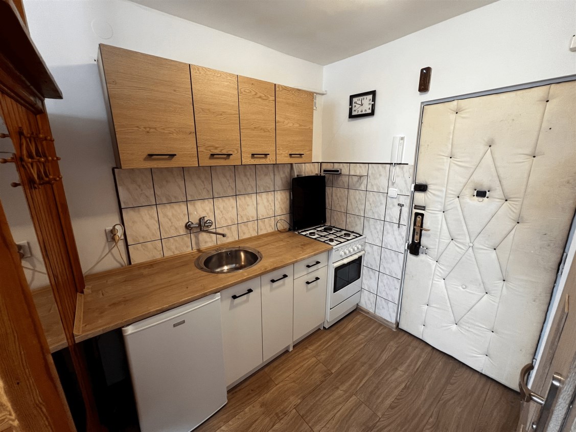 Lokal o powierzchni 20m2 składa się z pokoju, kuchni, łazienki z wc oraz przedpokoju i mieści się na piątym piętrze w wieżowcu z windą.